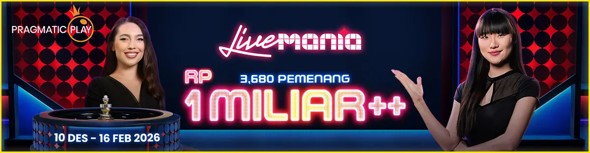 LIVE MANIA Turnamen oleh Pragmatic Play akan berlangsung mulai 10 Desember 2025 00:00 WIB hingga 16 Februari 2026 23:59 WIB. Total hadiah turnamen adalah RP 1 Miliar dan akan dibagikan kepada 3.680 pemain teratas yang memiliki skor tertinggi pada papan peringkat.